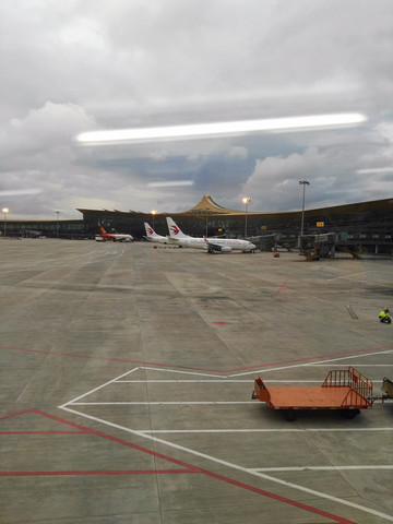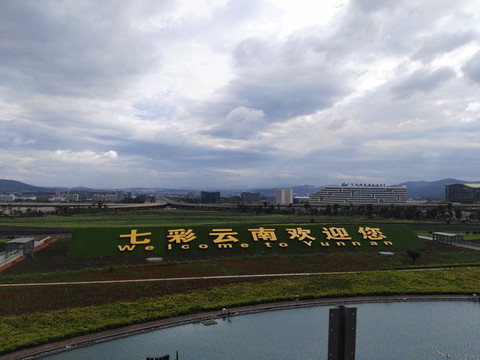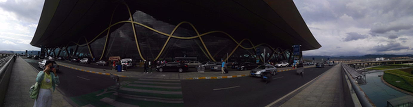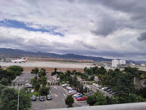 去丽江,在昆明机场中转,昆明机场远看是一架展翅飞翔的航班,动感十足。