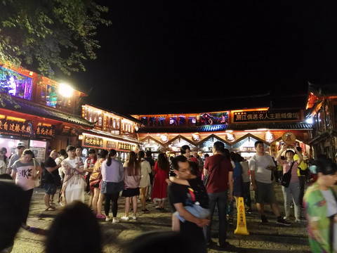古城的晚间,应该说夜间,游人如织,灯火通明,一派繁忙景象