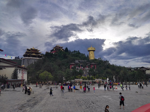 不堵车,2个半小时到达香格里拉,这是独克宗古城月光广场