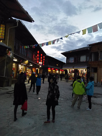 上午睡到自然醒,然后在门口古镇游览一番,顺便吃点东西,特别提醒,当地的小摊位早点,卖给当地人便宜,卖个游客要翻一倍,比如当地的粑粑,当地人买2.5元,游客5元,你要问他们怎么区分当地人和游客,这个一看就知道了,有的都不用听你说话。快到中午,我们打车去客运站,乘坐到虎跳峡景点的班车,到车站的时候都11点多了,最近的一班车是12:10分的,但是我们等到12:40才出站,这里的班车时间观念很差,基本都是等上满了人才发车,估计成本考虑,也可以理解。上车后,我们认识了去香格里拉的同伴,四川的一对情侣,计划结伴去旅行,约2.5小时后,到达了虎跳峡镇,刚下车就有很多司机问你是否去虎跳峡景区,因为去虎跳峡景区离虎跳峡镇还有7公里的路程,只有乘车才能到达景点,当然你是徒步客,也可以自行上去。在谈好价格后,一部车来回180元,平均每位40元来回。在通往景区路口,就有人拦下,让你去买票,好像是60元一位,因为不是我买票,记的不是很清楚,在通往景区的路上,由于车多,需要验票,约40分钟才到达了虎跳峡的景点,虎跳峡就是不错,不愧是以“险”名天下,是中国最深的峡谷之一。它包括上、中、下虎跳峡,高路徒步线,我们选择在上虎跳的地方游览,上虎跳是峡谷中最窄的一段,离公路边的虎跳峡镇9千米,其江心雄踞一块巨石,横卧中流,如一道跌瀑高坎陡立眼前,把激流一分为二,惊涛震天。传说曾有一猛虎借江心这块巨石,从玉龙雪山一侧,一跃而跳到哈巴雪山,故此石取名虎跳石。约莫1个小时就玩的差不多了,由于要赶往香格里拉,还有2.5个小时的路程,不堵车的情况下,如果堵车,就不止这个时间了,因为这条G214路是通往西藏的繁忙线,山路多险,所有我们早点出发。在来的时候,驾驶员就问我们如果去香格里拉,他会叫他朋友的车带过去,这样方便一点,也便宜,30元一个人,我们想了一下,也算划算,就跟车去了香格里拉,一路上都有美丽的风景陪伴,司机每到一个比较好的风景处,都会停下来,让你拍照休息,也可让你适应一下这高寒的气候。晚上7点多,我们就到了美丽的人间天堂-香格里拉,我们让师傅送到古城独克宗,独克宗古城是中国保存得最好、最大的藏民居群,而且是茶马古道的枢纽。按照预定的客栈住下,这里气温很低,当我们家里都是煎熬在40℃高温的时候,这里的气温才12℃,晚上会更底,为了不激起公愤,连朋友圈都没有发,晚上为了御寒,并想品尝当地特色,我们选择了一家火锅店吃牦牛火锅,人均100元的消费标准,这里是正宗的牦牛肉,有两盆,一盆是生的,一盆是熟的,按照当地配料,蔬菜、菌类,味道相当的不错,吃完饭,漫步在古城月光广场,欣赏当地的藏族集体篝火舞蹈,也可到旁边的红军纪念馆、龟山寺庙去游览,都是有名的风景区。但这里气温太低,抵不过,还是在附件的服装店买了御寒的冲锋衣,价格不贵150元一件,比租衣服50元一件划算,也可以买各种披肩御寒。夜晚的夜空,明朗清静,明显有一种高寒地区的感觉存在,古城在各种灯光的映衬下,显得格外的美丽、明净、繁华。在这里我们度过了一个难忘的夜晚。