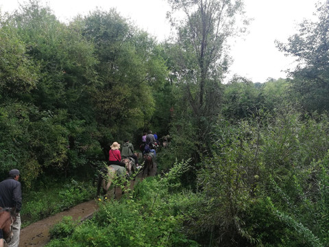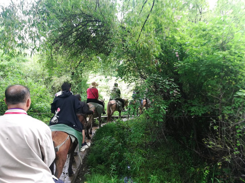 穿过村庄,进入绿意盎然的山间,行走在羊肠小道上,需要肢体对马儿的配合以及对马儿的信任。