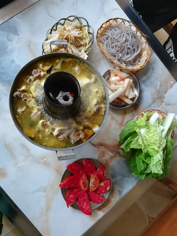 中午土鸡米线火锅,丰盛谈不上,但能填饱四个大男人的肚子足矣。
