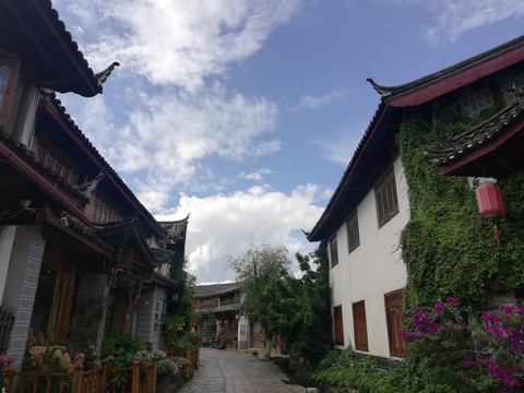 丽江 城内,大概疫情未完全解除原因,又或者尚在淡季,街巷里游客并不多,难得的宁静,墙垣绿植萦绕,百花兀自盛开,有种恍若隔世的错觉。