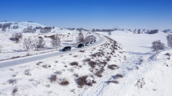 第一天从北京自驾到乌兰布统需要7个小时,行前一定要准备好干粮,驱车来到白雪皑皑的草原,视野的前方是一望无际的公路,道路两旁被大雪紧紧地覆盖着,完全看不到其他景物,宛如闯进了一个神奇的“白色海洋”。