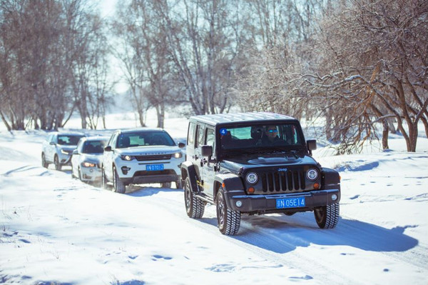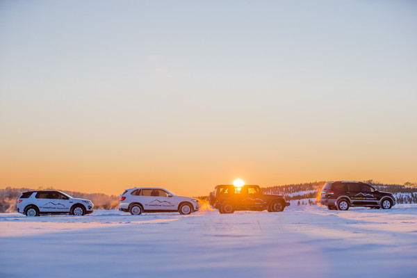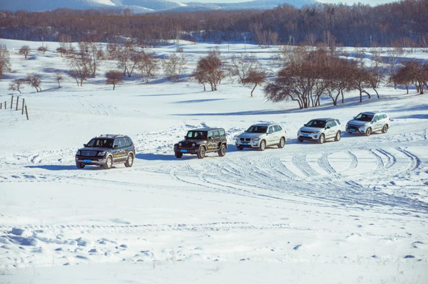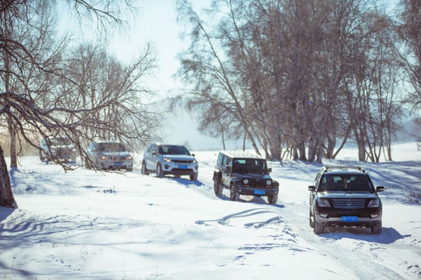 我们的车队自驾在冰雪覆盖的草原上,在没有道路的地方”闯”出一条路来。这也是冰雪自驾的乐趣之一。冲上缓缓的小山坡,紧接着又冲上一个陡峭的大山坡,要有些技术才能做得到。有的车就在半山坡上不来了,只得倒回去重新来过。这时候雪地胎的特性体现的淋漓尽致,外层柔软,使轮胎在低温环境中具备优越抓地和防滑性能,基层坚实,提升轮胎操控性能。