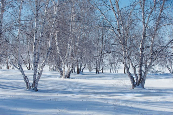 小河头的冬天恬水流淌,河中的水草塔头被白雪覆盖,形成了一个个可爱的“雪蘑菇”,形状各异,在河中漂浮着。在这里看日出日落,沿着水流的方向走到上游,冰面上弥漫着水雾,映着孤树的剪影,树枝上挂满了雾淞,地面上布满了洁白的冰晶,宛如世外桃源般清澈。