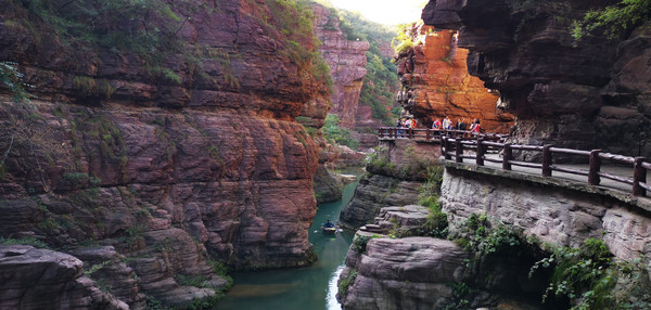 双崖对峙的峡谷群和各种动态的瀑、泉、溪、潭,共同构成了“云台地貌”景观。