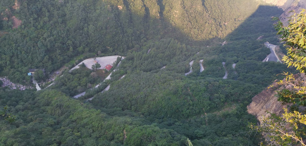 在乘车点集中上车,一路前行上山,在穿行上山之中,眼没闲着,特别是到了叠彩山路上,车在来回八道拐的山路上曲折上行,视野也越来越开阔,山沟亦渐成行,风光亦渐迷人。