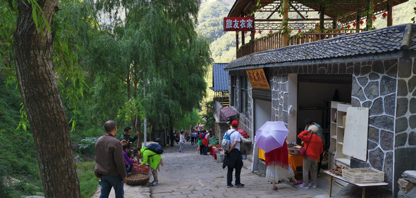 回到村口,“中华影视村郭亮”刻在石壁上,我们还逛了影视村,景致别样,商业氛围较浓。