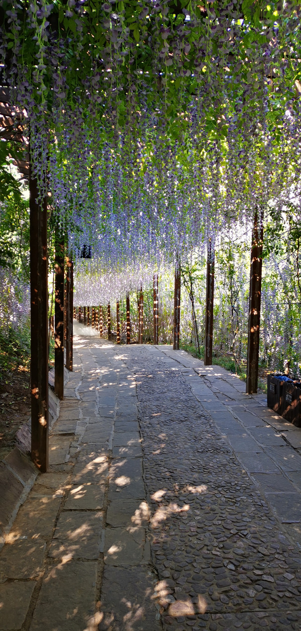 出谷时,经过一个花廊,下有人设雾锁,如腾云上。
