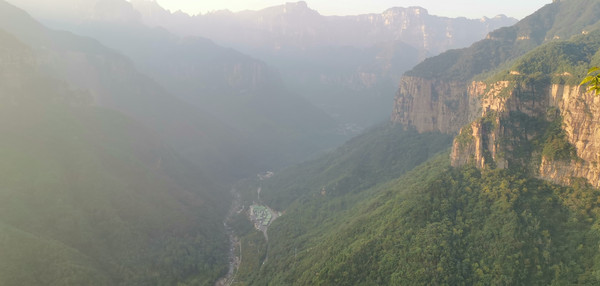 1297米高的崖壁上,依次建有四户人家,距门口4米外即悬崖,亲临其境,触目惊心,如今成了太行古民居。