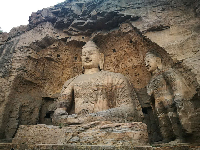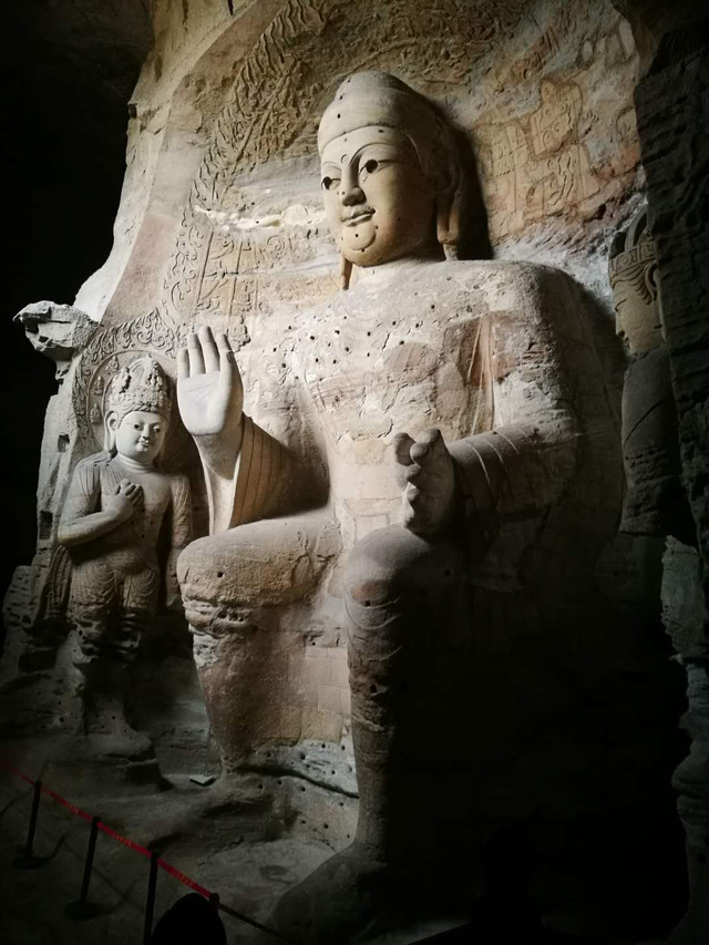 上午参观云冈石窟,这是北魏时期开凿的石窟,比洛阳龙门石窟还要早,其中最好看的是第五、第六、第九、第十窟,有巨型的人物雕刻,也有小型的人物、动物形象,满墙都是,石窟高达十几米,有些色彩依旧,据说原来是没有色彩的,是清朝维护时上的颜色,在现在看来无论石刻工艺还是色彩仍然觉得非常精美。因为肺炎疫情影响了旅游业,山西省对大部分景区免门票,云冈石窟也属于免票之列,当天人很多,需要提前预约才能游览,据说每天预约已达到了上限1.5万人。