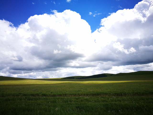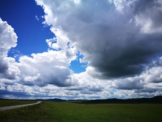 一大早大约5点半就从经棚镇出发,经集锡线和热阿线大约7点半到达克什克腾旗石阵,途中虽下雨,但没想到快到石阵时,天空的云彩开始升腾,蓝天白云加上绿油油的草原,牛羊成群,随手一拍就是大片。