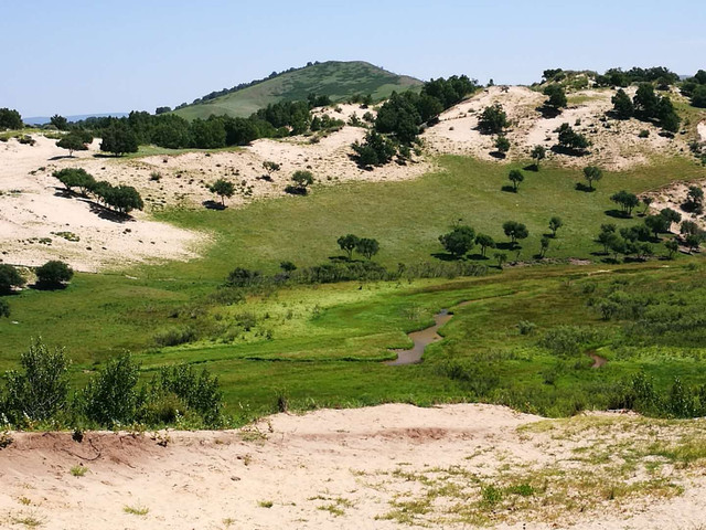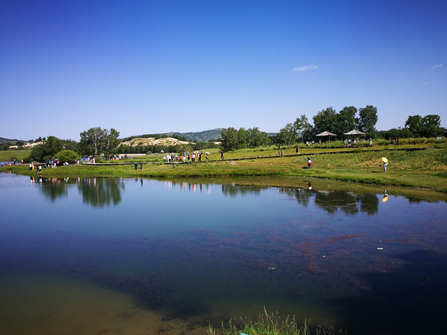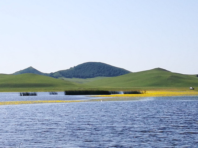 上午吃过早餐就开始向将军泡子进发,到时大约8点,从停车场到湖边要走好远,大约20多分钟,但到达湖边后感觉还是不错的,湖中有成片的小黄花,野鸭在慢慢游荡,远处是半沙地型草原,小树星星点点,树木和沙地绿白相间,对比鲜明。