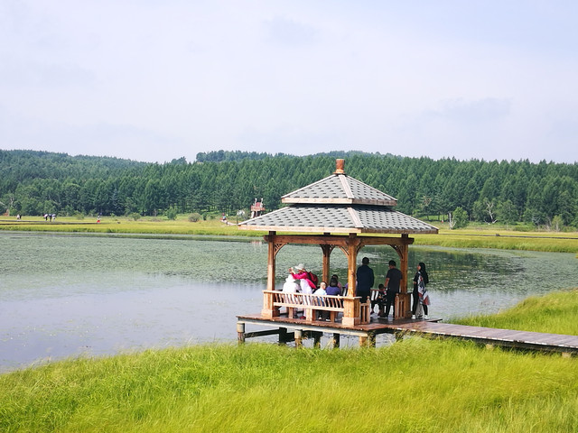 从山顶下来驱车继续向前,到达横立山景点,沿栈道登上山顶的巨石之上,眺望整个乌兰布统草原,附近的红松湖和小野鸭湖像两个明亮的镜子镶嵌在莽莽草原之上。