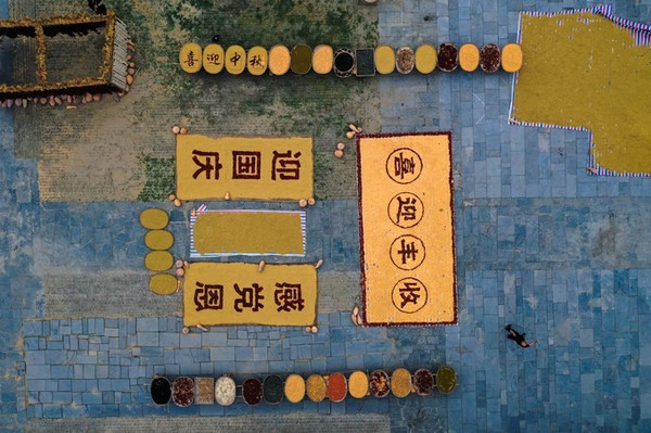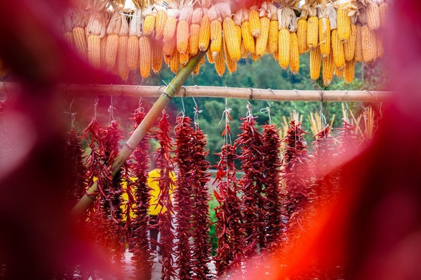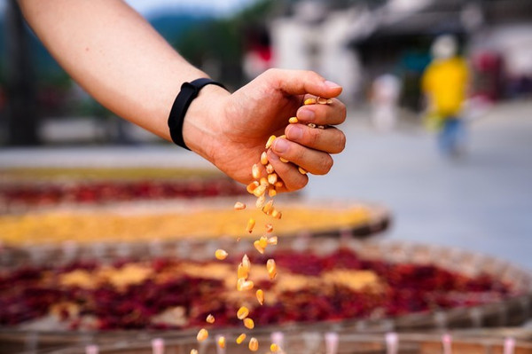 春天是农人的希望,秋天是农人的喜悦。收割只是入秋的序曲,晒秋才是秋天的热烈。晒秋,使人真切听到了大地万物同太阳之间亘古的呼唤和应答。生活在这里的村民,每到晒秋季节,村民家家户户搬出玉米、稻谷、辣椒等农作物,晒在或圆或方的匾箩里,缤纷的色彩和徽派民居的白墙灰瓦形成鲜明的对比。