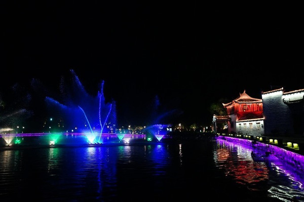有别于白天的沉稳内敛,在不经意间,透露出她活跃、灵动的一面。皎洁的月光,悦耳的旋律,音乐喷泉缓缓升起,彩色的灯光射在飞溅的水花上,多姿绚丽。月下的西递,是一个可以让人忘却时间的地方,需要放慢脚步,用心去感受。