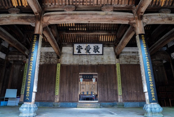 敬爱堂是西递三座祠堂中最大的一个,“敬爱堂”寓意深远,既启示后人要敬老爱幼,又示意族人要互敬互爱。后厅一斗大“孝”字,是南宋大理学家朱熹所书。充分体现了“敬老尊老”、“兄弟互爱”的中华美德。敬爱堂前溪水绕此堂流过,颇有小桥流水人家之感。