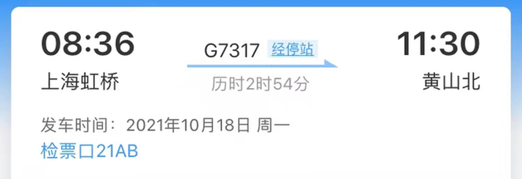 上海虹桥到黄山的车次很多,基本都历时3小时左右即可到达黄山北站,二等车票价191元左右。到达黄山北站后,隔壁就是旅游客运中心,去黄山周边的景区都可以在那里买票。