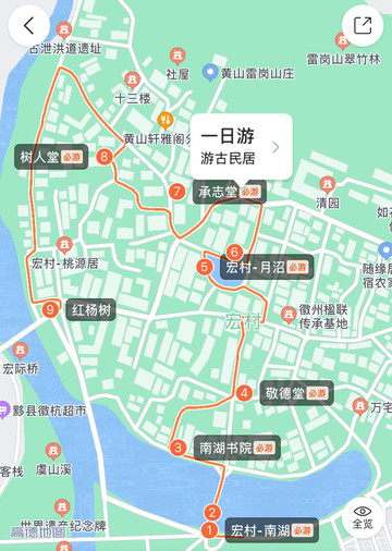 游玩路线是按照高德智能路线来的,懒人必备。以南湖作为起点绕村一圈。整个村逛下来,其实一个下午就够了。但对于不赶着去下一个景点的游客来说,像我这样住一晚也挺好,感受古建筑风情。