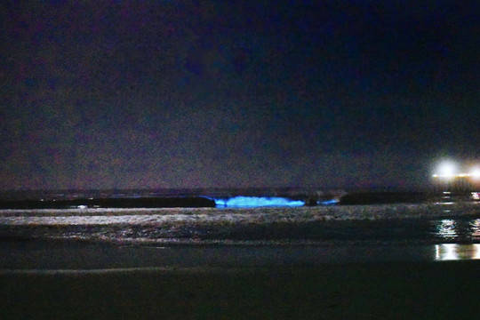 黑夜中的海洋总是那样的隐秘,而蓝色的“泪光” 却让我们看见了它独特的身姿。