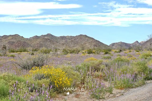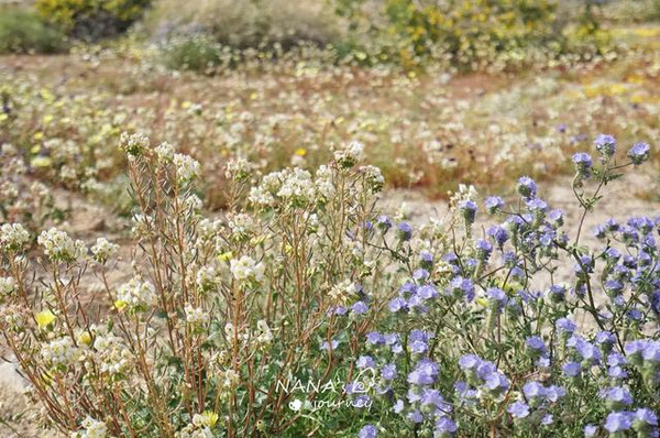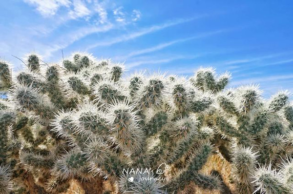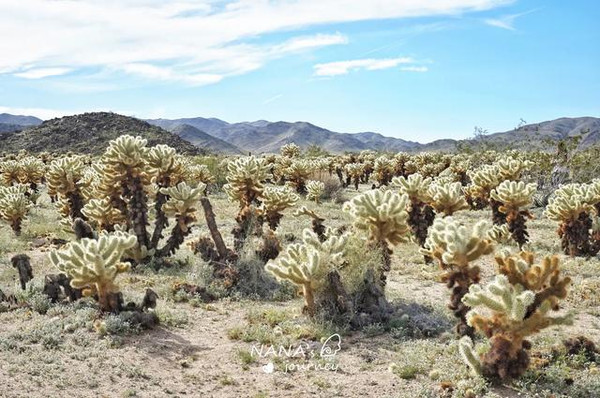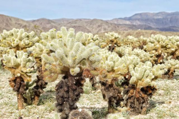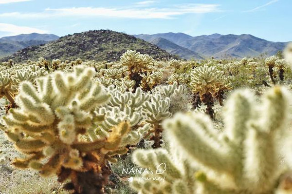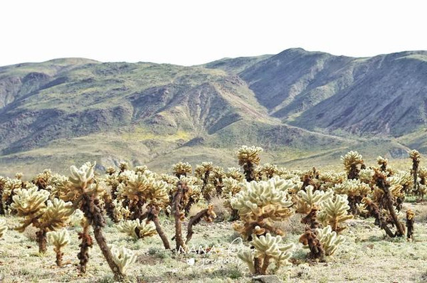 我们先到的西部是莫哈维沙漠,海拔在2000米以上,干燥,以约书亚树为主,而下了山路到的地方是东部科罗拉多沙漠,海拔略低,气温更高,花园里长满了木馏油灌木,墨西哥刺木和多刺仙人掌。