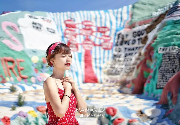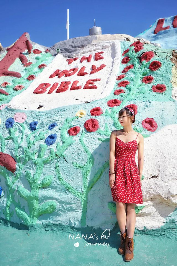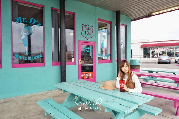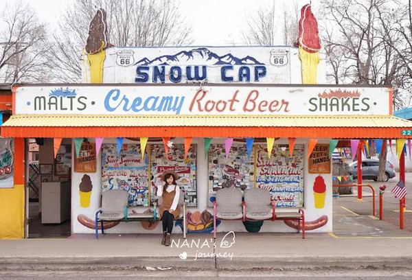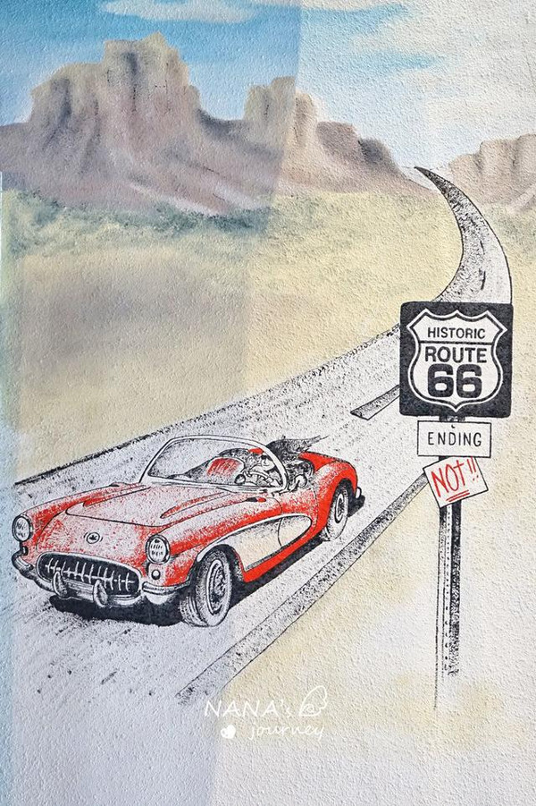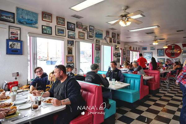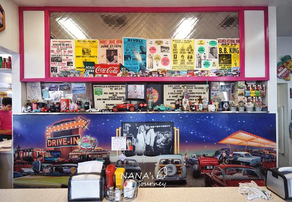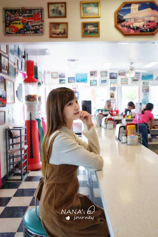 这里是我最期待的地方,因为这里让我觉得非常的美国,而我选择的红色系服装和配饰,正也是那个年代最流行的复古风,偶尔的偶尔,也让我跟着景点地道一回。