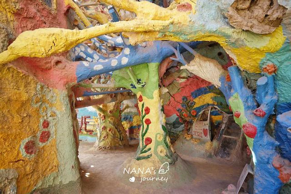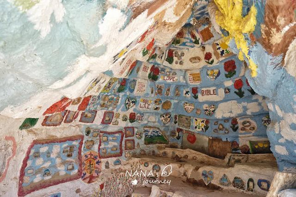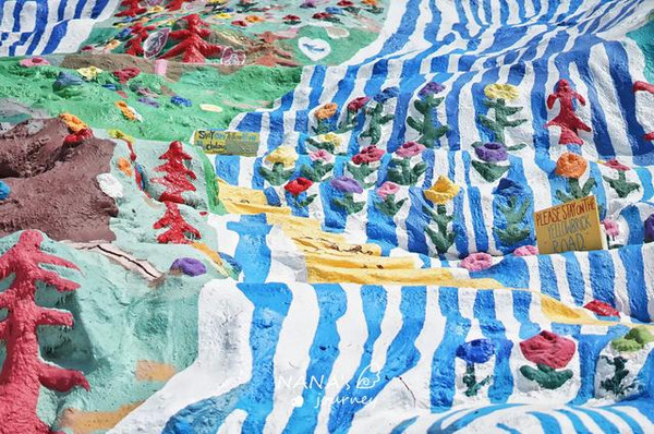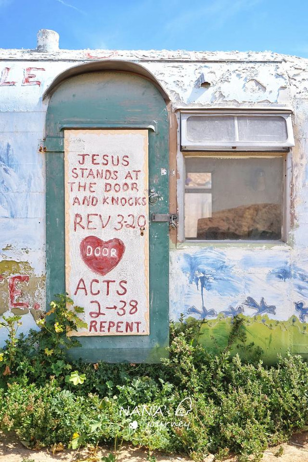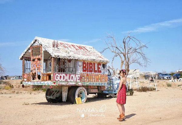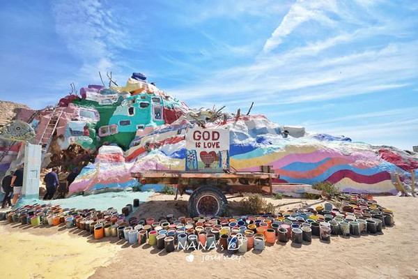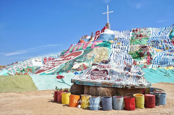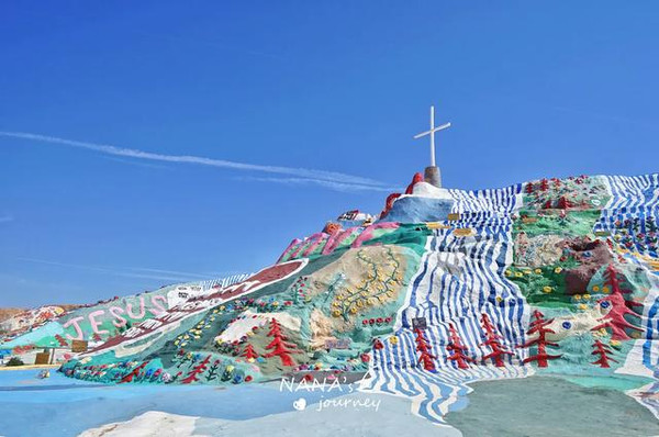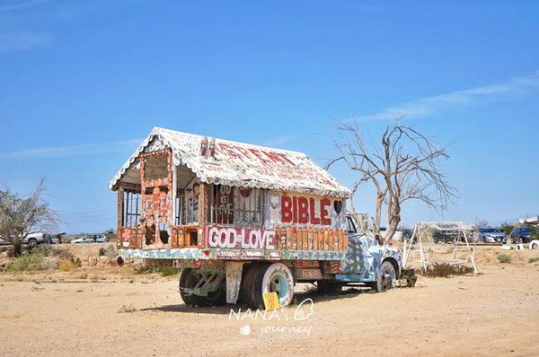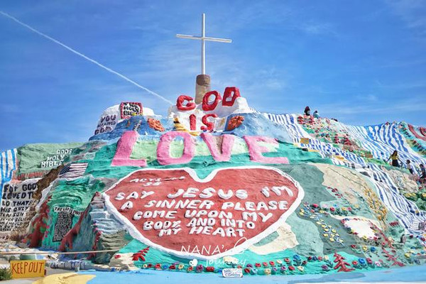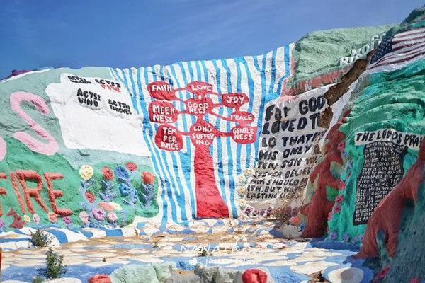 这里被称为美国最后的自由之地,80年代经济危机之时,被社会遗弃的退役老兵、嬉皮士、流浪汉等人来到这里定居。Leonard Knight,怀揣着对上帝的爱,用了24年的时间完成了救赎山的妆点,这里是爱与和平的救赎之地。