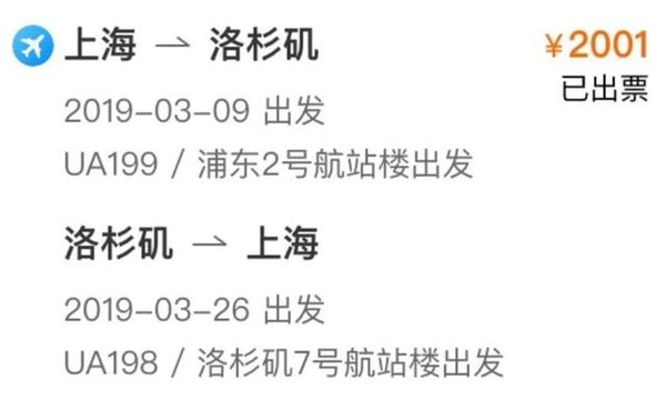 1、上海-洛杉矶往返机票