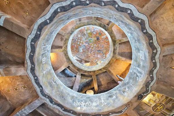 侧面有个类似洞穴的地方,却又是一棵树般的存在连接整个建筑,穿梭在里面,童话森林一般的迷幻感,加上阳光的透射,如同秘密花园。