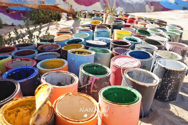 救赎山的两旁和正前方都摆放着一些物品,成了一个又一个的小景,比如救赎山一侧的颜料罐。
