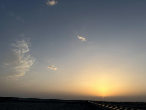 沿塔克拉玛干沙漠的边沿前行,人烟稀少,看不到村落,宽阔的高速路上,来往车辆也很少。此服务区,只有卫生间对旅客开放,其他服务设施都关着门,此时服务区内就我们这一辆车停留,正在值守、来自四川的两名保安之一说,一天见不到几辆车,看不到几个人,见了我们很高兴的样子——有人与其聊天了。半年回家一次,与蹲监狱6个月有何不同啊。
