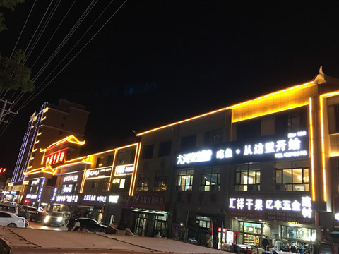 晚饭后,围着县城转转,大河宴在此也开店了。