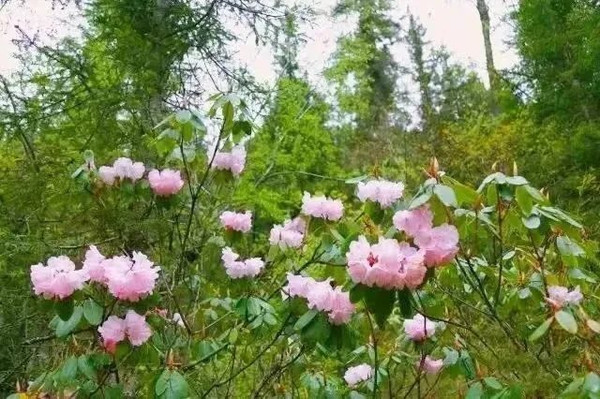 卡龙沟的杜鹃花娇艳妩媚,却不张扬,悄悄地绽放在卡龙沟的山沟间、树林里,星星点点,无私地妆点着群山。
