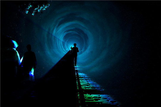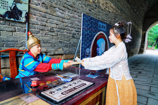 光影秀结束后,我们还可以来到城楼右侧,光影打造出来的时光隧道,带我们继续去探寻属于山海关的故事。