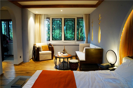 推荐大明帅府,院落以大明元帅、帅府练武场和帅府清曲这三大内容为主调,每一间民宿的风格都不一样,有着中式风格的清雅和底蕴。