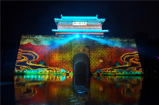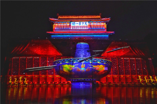 光影秀每天晚上8点上演,历史和现代在这里完美融合,从历史、神话、民族特色及自然界中提炼多种现象的元素,像华表、龙、长城、山河、剪纸艺术、戚家军等,让我们在这场光影秀中,对于山海关有了更深刻的了解。