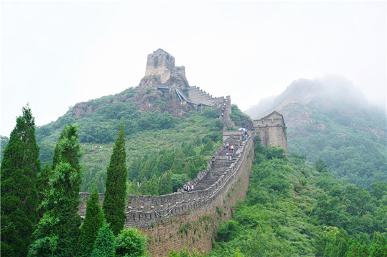 夏天的雨,让整个角山笼罩在了云雾缭绕之中,这样的天气爬长城,和晴朗的天气有着完全不一样的韵味,因为云雾的参与,青山之上,蜿蜒陡峭的长城在云雾中若隐若现,宛如仙境。