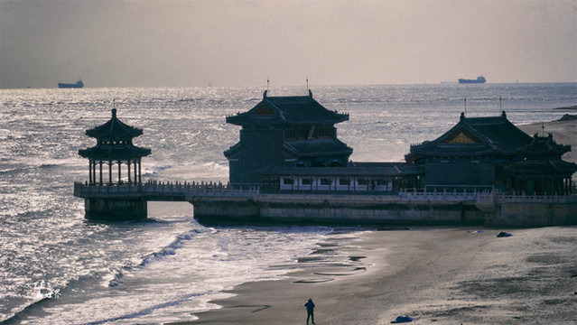 1900年八国联军从老龙头登陆,四座庙宇毁于八国联军的炮火。1988年山海关在原址,按照原貌重新设计修复了海神庙。如今我们走过海神殿和天后宫,可以从栈桥直达观海亭,栈桥和观海亭都修建在了海上,视野极佳。