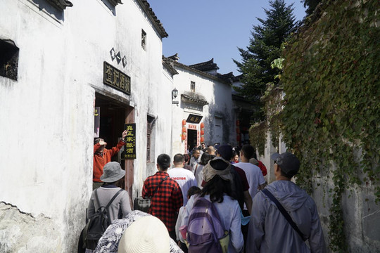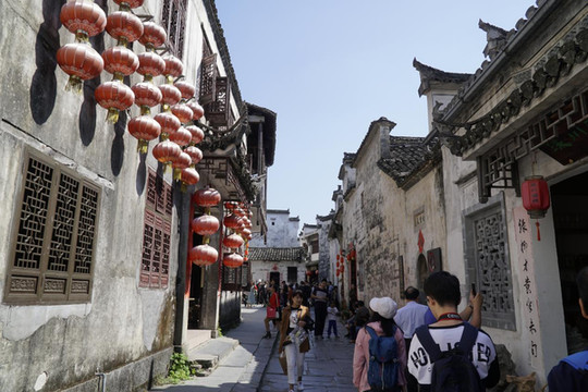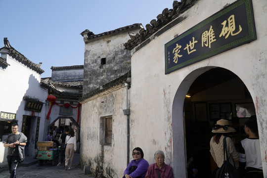 走进古村逛逛。徽派建筑是中国江南传统民居的代表,白墙黛瓦马头墙(封火墙)。闭合式的带有天井的四合院,很适于南方多阴雨的天气。对于多山多地少的南方村落来说,窄巷、一人巷随处可见。