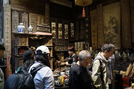 看村落布局,看建筑,细节就是看砖木石三雕了,砖雕木雕石雕被称为徽州三绝。徽州三雕的内容主要为博古吉图、民间传说、戏文故事、民情风俗、渔樵耕读等。浮雕、透雕、圆雕、线雕与多种技法的并用。古代没有带电的工具,看传统三雕总觉得带着体温。