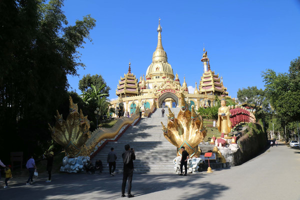 11月29日上午,二和师傅从200公里外的丽江开车来大理时,已是上午9点钟。我们6位游客上完车即出发,从大理到芒市不到400公里,开了近5个小时。下午2点甫一抵达,立即参观树包塔和勐焕大金塔,再行车100多公里,前往瑞丽的独树成林,30日上午继续游览姐告口岸和一寨两国景观。