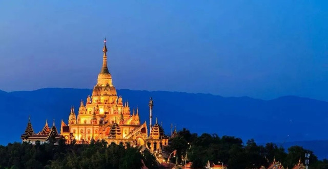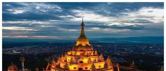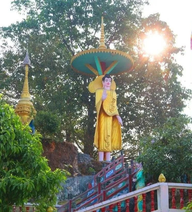 去瑞丽时,还可以弯到87公里外的芒市走一圈。这里有一座南亚傣王宫风格的勐焕大金塔,位于狼牙山顶。