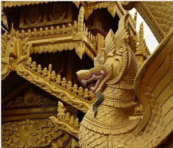 整座塔高76米,最高点戴有重达2.3吨的大金顶。美轮美奂,颇具异域风情。瞬间想到《西游记》里的小乘佛教。