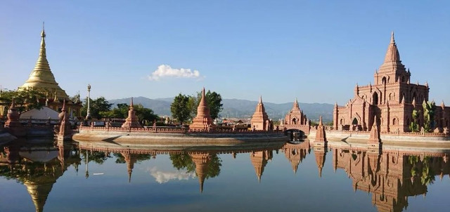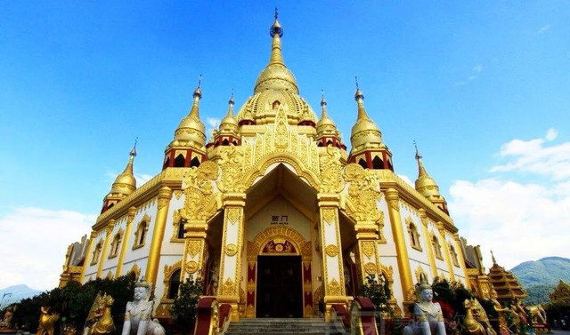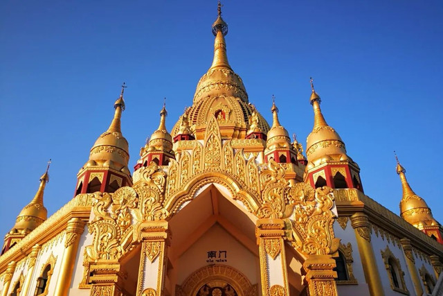 始建于17世纪的姐勒金塔是瑞丽最古老的佛教建筑,也被称为金狮塔。