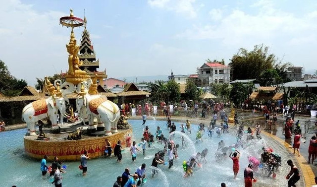 喊沙奘寺、泼水广场及大部分民居都还保持着非常明丽的傣族风格。不知道下一个泼水节能不能去看看,那是多么美好欢乐的场面啊!