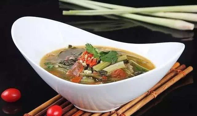 酸帕菜是一道用傣族特制酸水做的煮菜,汤里还有大量的西红柿素。