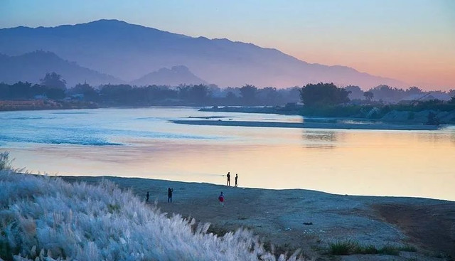 瑞丽江其中20余公里属中缅两国界河。它的美可能在于平缓水流中的清平如镜;可能在于江畔良田万顷,傣家村寨树竹环绕;也可能在于它养育中傣两国的独特地理位置。
