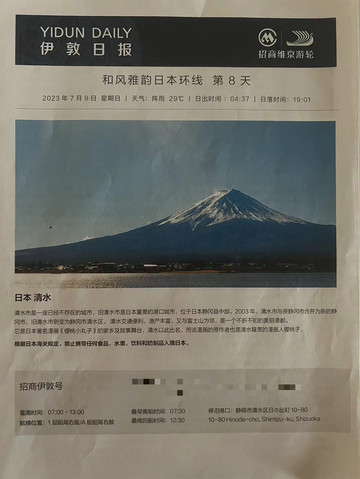 7月9日早上招商伊敦号抵达静冈市清水区,是本次日本之行最远的地方。当天的靠港时间只有上午,所以行程还是比较紧张的。