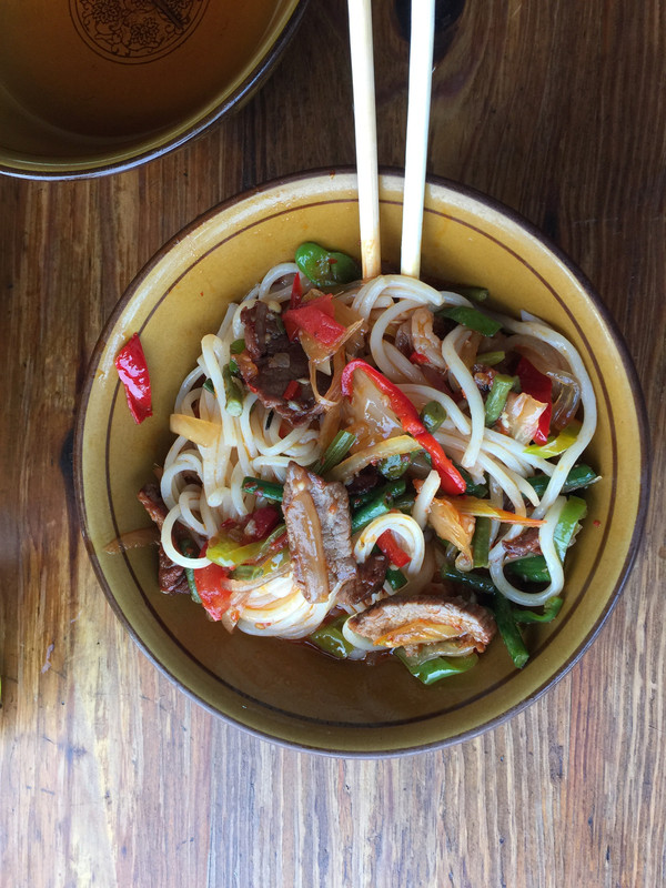 从盐湖里被阴风出来,想快吃点热食再上路,景区外一排饭馆选一了家兰州牛肉面,店内似有魔法一样,所有人(司机睡一上午何由心神荒乱)竟然心不在焉地没人发现墙上菜单没有价格(因未察墙上菜单只有图片没有价格,在丽江被弱小女子宰过,她老公在后厨拎刀竖耳,从帘缝张望。从此谨记:出门在外,先看价格。无价店基本是黑店)。牛肉面端上来,发现二三片纸样薄的牛肉浮在表面,瞬间幡醒进了黑店了。店家显然是汉人,没有戴白帽,横脸斜眼打量来人,脸上的笑容比碗里的牛肉还少。结账八十,比心理价格贵了三四十块。